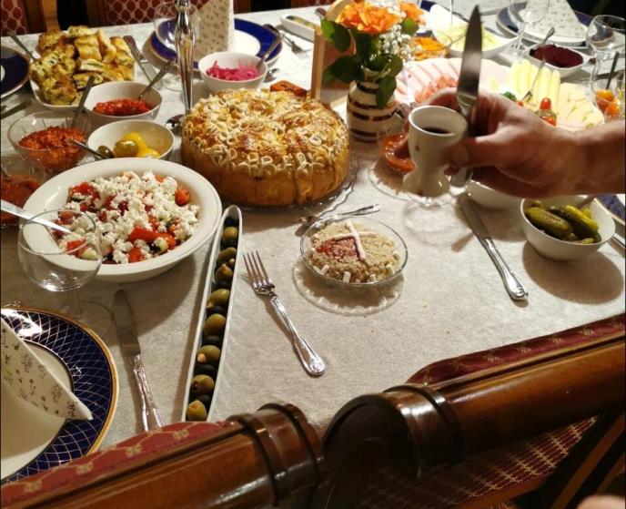Goste najčešće dočeka trpeza puna raznih đakonija, pa pored pečenja i sarme, tu su još i razne salate, kiflice, pite, meze...
