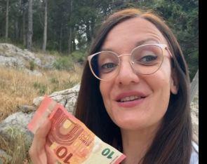 Monika je u Makarskoj i drži novčanicu od 10 evra prateći trend u kojem putnici ilustruju cene u nekoj zemlji pokazujući šta sve mogu s tim iznosom. Ispostavilo se da u Hrvatskoj baš i ne može mnogo toga.