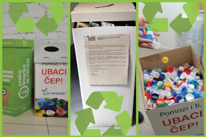 Sortiranje otpada i njegova reciklaža realizuje se u saradnji sa organizacijama i inicijativama "Čep za hendikep", "Naša kuća" i "Svaka limenka se računa".