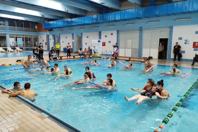 Projekat „Adaptivna fizička aktivnost i sport – Mladi za mlade“ kreiran je tako da podstiče aktivnu inkluziju, promoviše jednaka prava za sve, ali i podstakne povećanje zapošljivosti. Mladi nezaposleni ljudi sa evidencije Nacionalne službe za zapošljavanje angažovani su ovom prilikom i obučeni da rade kao instruktori, primenjuju plivanje, funkcionalni trening i kardio fitnes, podržavajući mlade muškarce i žene sa invaliditetom u njihovoj socijalnoj integraciji.
