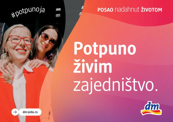 U kompaniji dm uspeh se ne meri samo poslovnim rezultatima, već i zadovoljstvom ljudi koji te rezultate stvaraju. U centru pažnje je uvek čovek - jer motivisani zaposleni grade zajednicu koja inspiriše i pokreće druge. Nova internacionalna kampanja kompanije dm „Posao nadahnut životom“ pokazuje kako se vrednosti poput autentičnosti, raznolikosti i zajedništva žive svakog dana, dok tim dm-a svojim primerima potvrđuje da je moguće uskladiti karijeru i lični život, i pri tome ostati potpuno svoj.