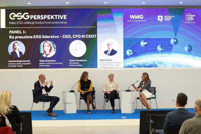 Konfernecija je obuhvatila dva panela, a učešće su putem video uključenja uzeli i sagovornici iz inostranstva. Panelista prve diskusije, Vesna Tomašević, ESG ekspert, navodi da je država maksimalno uključena u podizanju nivoa ESG-a. Na panelu su govorili i Tijana Koprivica, direktor za održivo poslovanje Delta Holdinga, Jasmina Radovanović, savetnica u NALED-u i Bojan Stanić, pomoćnik direktora Sektora za strateške analize u PKS.