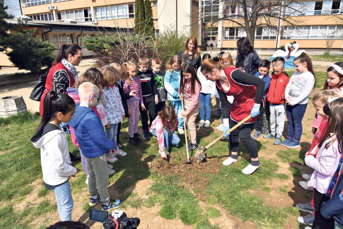 - Svakom novom sadnjom podiže se stepen informisanosti i obrazovanja učenika o očuvanju životne sredine. U okviru projektnih aktivnosti, učenici sade sadnice, uče o njihovom održavanju, kao i načinu na koji treba brinuti o prirodi - navela je direktorka.